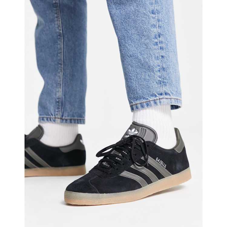 adidas Originals Gazelle trainers in black with gum sole Very well made.