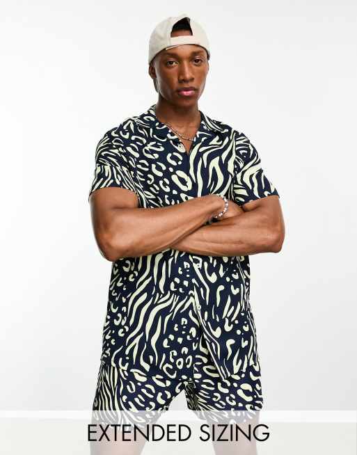 ASOS DESIGN revere shirt in navy zebra print part of a set ASOS Very well made.