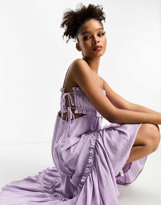 ASOS DESIGN pleat plunge neck midi dress with elasticated straps and back in lilac Very well made.