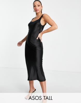ASOS DESIGN Tall scoop neck midi satin slip dress in black ASOS Very well made.