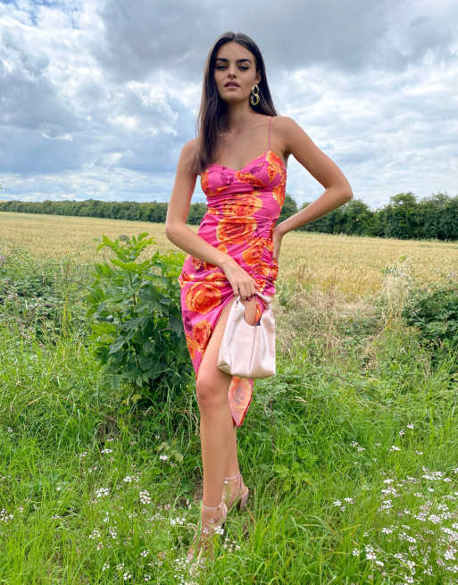 ASOS DESIGN Gerafftes Midi Bodycon Kleid mit Herzausschnitt in Stone Very well made.