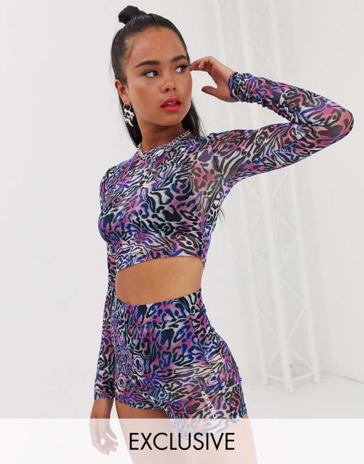 ASOS DESIGN short sleeve mesh crop fitted shirt in leopard print part of a set Very well made.