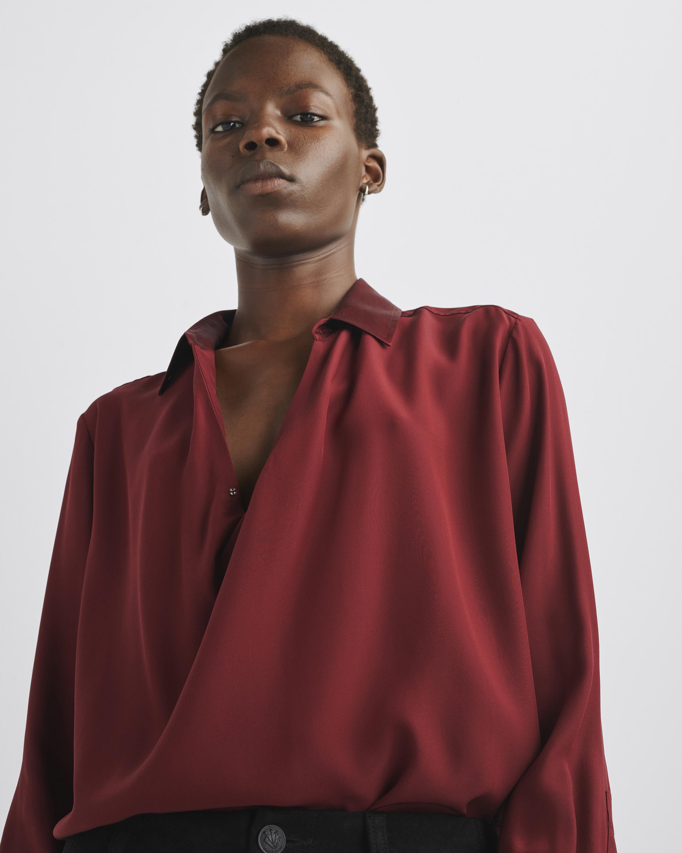 Stella Pussy Bow Blouse Burgundy Silk Stretch Very well made.