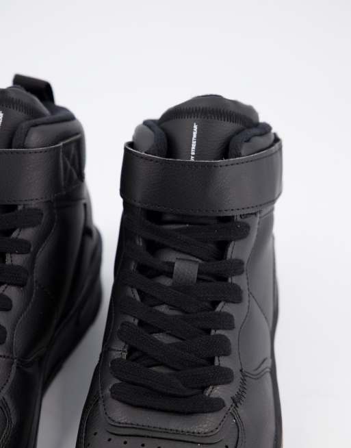 Bershka hi top sneakers with velcro strap in black Very well made.