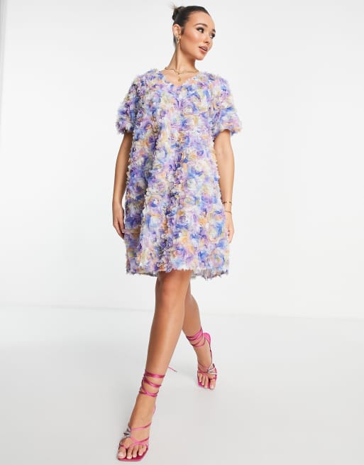 Y.A.S applique v neck mini dress in blue pink floral ASOS Very well made.