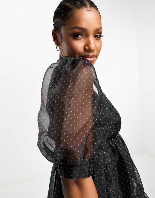 Georgia Puff Sleeve Dress in Black Polka Dot LUCY IN THE SKY Very well made.