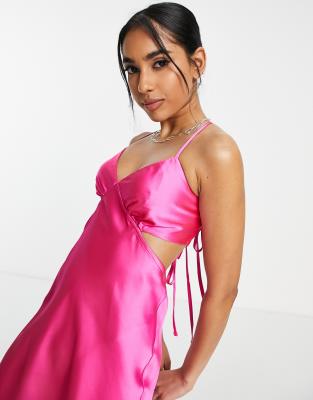 Topshop Petite cut out satin mini slip dress in hot pink Very well made.