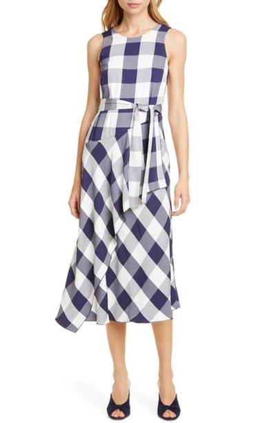 Karen Millen Draped Gingham Midi Dress In Blue Multi ModeSens Very well made.