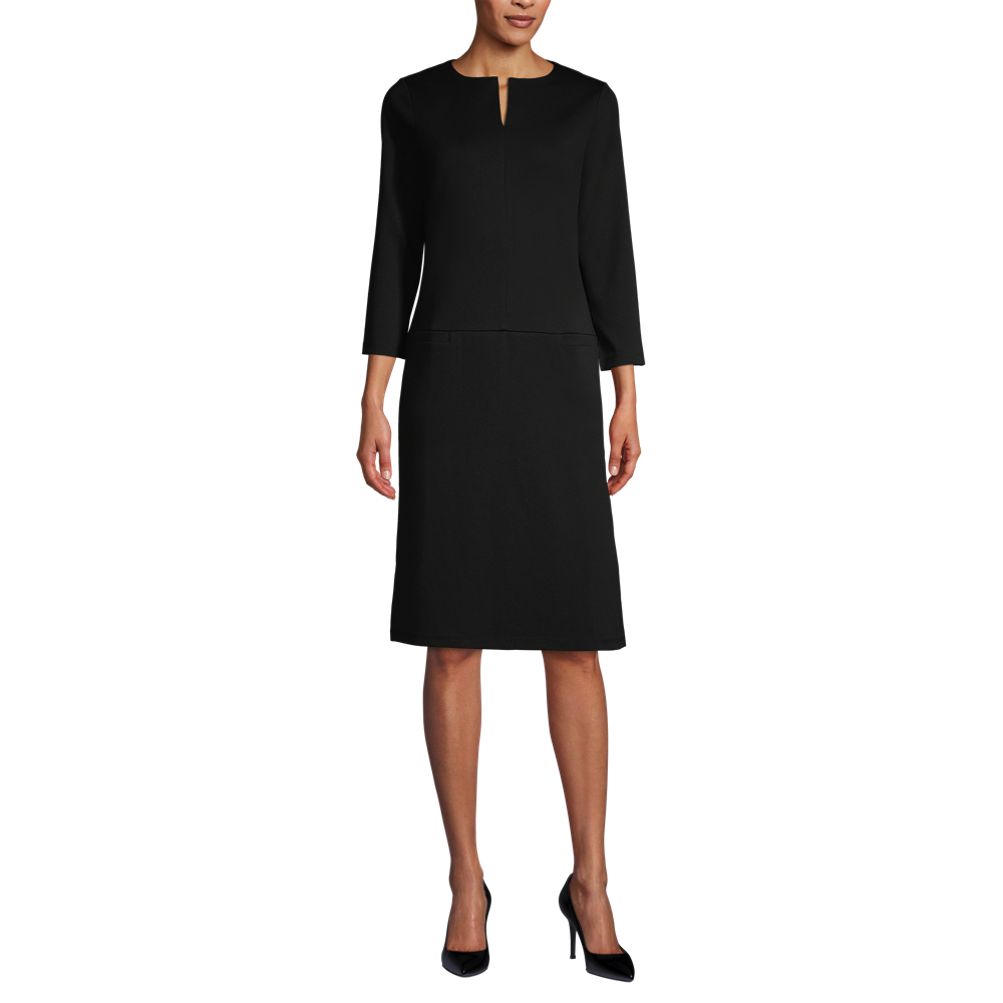Women s Ponte 3 4 Sleeve Split Neck Shift Dress Lands End Very well made.