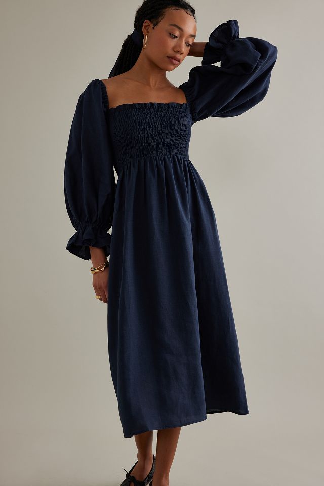 Sleeper Atlanta Lounge Midi Dress in Bosporus Navy Blue Linen Very well made.