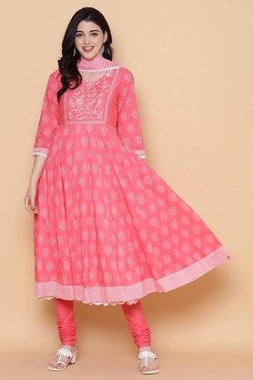 Buy Pink Cotton Anarkali Solid Kurta Churidar Suit Set Kurta Very well made.