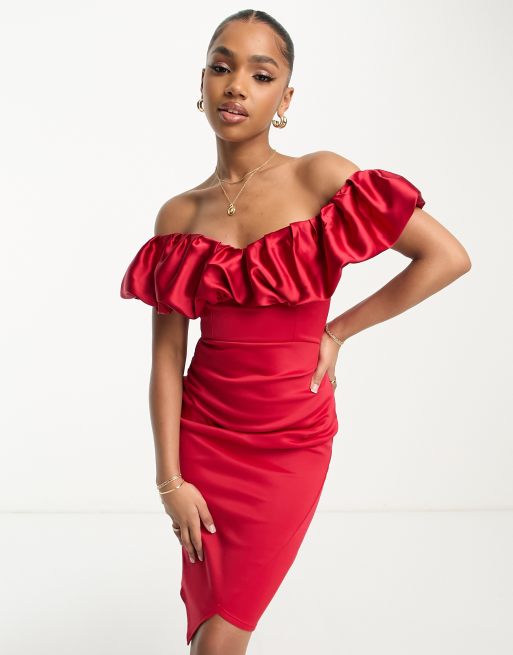 Buy Lipsy Red Ruffle Bardot Split Wrap Midi Dress from Next Luxembourg Very well made.