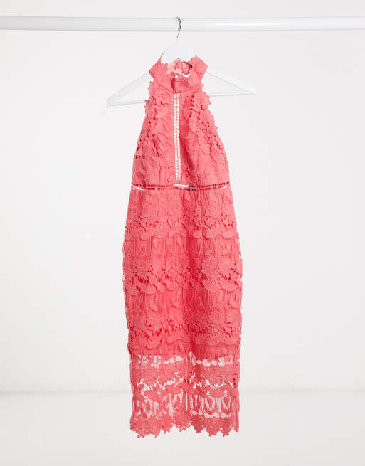 Bardot lace halter midi dress in coral ASOS Very well made.