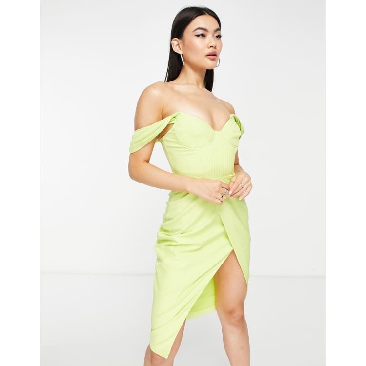 KIARA Sweetheart Neckline Bardot Midi Dress In Green Very well made.
