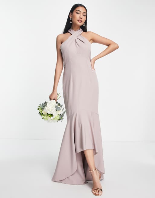 Little Mistress Bridesmaid cross front midi dress in mink Very well made.
