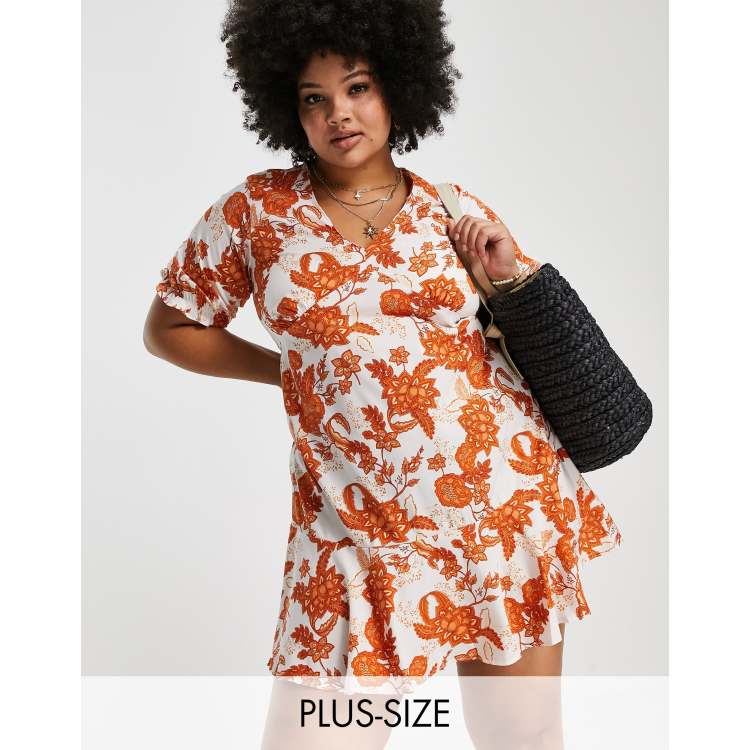 Simply Be Ladies Burnt Orange Floral Flared V Neck Dress Size 12 BNWT Very well made.