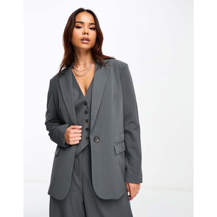 Checked double breasted blazer grey checks Vero Moda La Redoute Very well made.