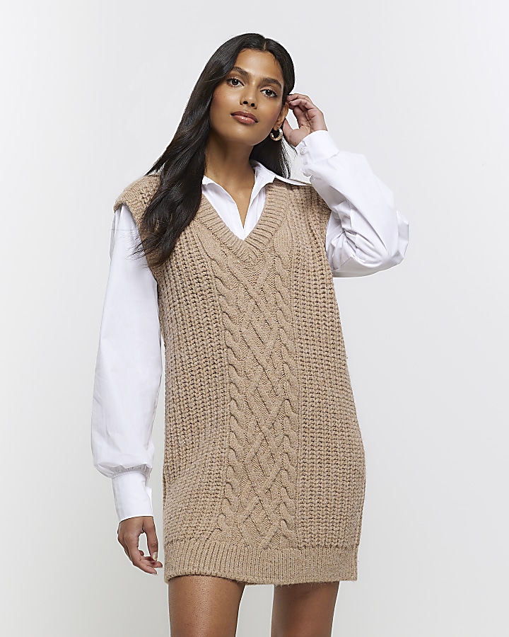 Blue Vanilla Stone Stripe Knit Mini Jumper Dress New Look Very well made.