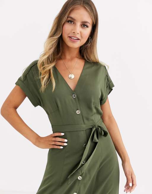 Oasis GRECIAN MIDI DRESS Khaki 1 Midi dress with sleeves Midi Very well made.
