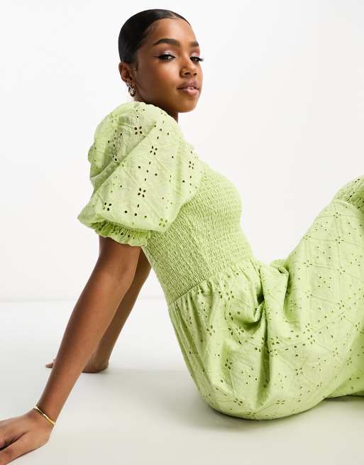 Miss Selfridge shirred broderie tiered maxi dress in green ASOS Very well made.