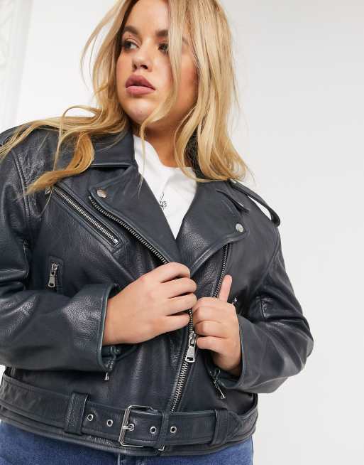 ASOS DESIGN Curve oversized leather biker jacket in black Very well made.