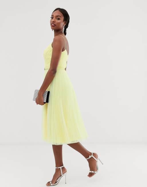 ASOS DESIGN Tall belted pleated tulle cami midi dress Very well made.