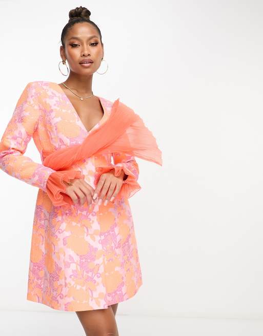 ASOS LUXE plunge blazer dress with chiffon sash and cuff in floral jacquard Very well made.