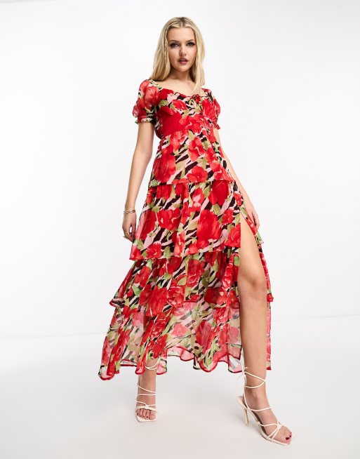 Miss Selfridge occasion chiffon tiered maxi dress in zebra floral Very well made.