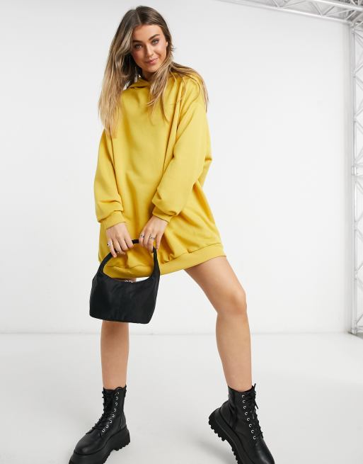 ASOS DESIGN oversized mini sweatshirt hoodie dress in yolk yellow Very well made.