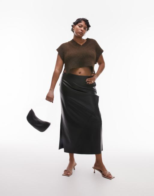 Topshop Curve leather look clean midi skirt in black ASOS Very well made.