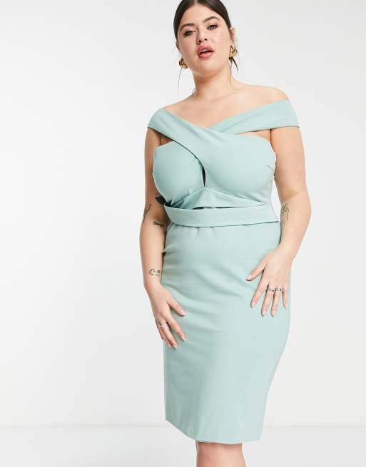 Lavish Alice Plus bardot midi dress with keyhole detail in sage Very well made.