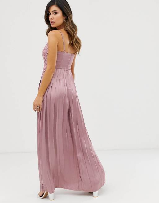 LITTLE MISTRESS PINK BEADED LEAF EMBROIDERED TULLE LONG MAXI PARTY Very well made.