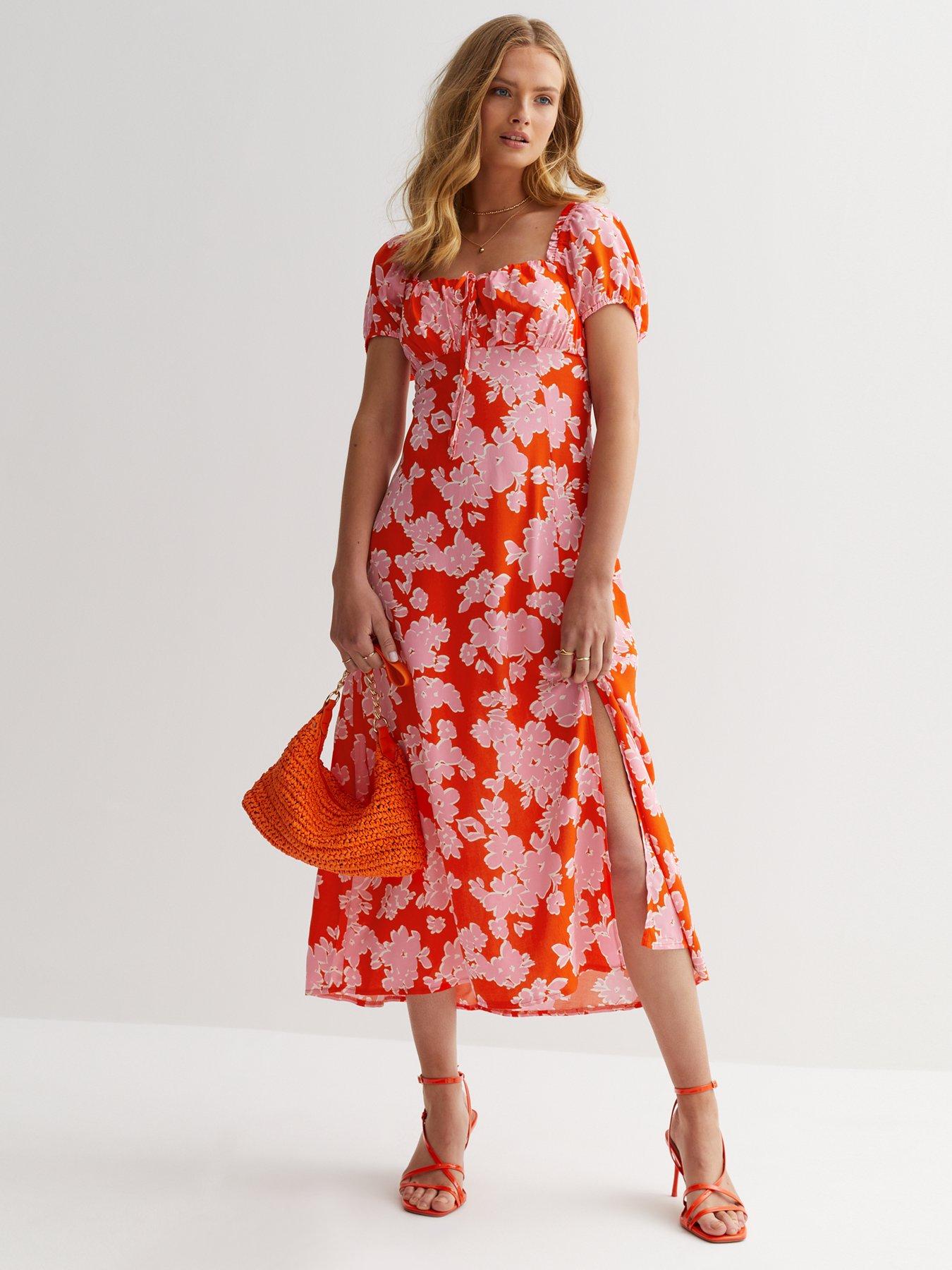 New Look Floral Print Puff Sleeve Midi Dress Pink very Very well made.