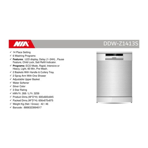 Buy Daewoo 6 Programs Dishwasher DDW Z1413S Silver Online Shop Very well made.