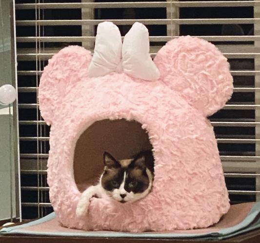 BEST FRIENDS BY SHERI Disney Minnie Mouse Shag Fur Hut Covered Cat Very well made.