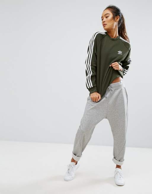 adidas Originals Khaki Three Stripe Boyfriend Sweatshirt ASOS Very well made.