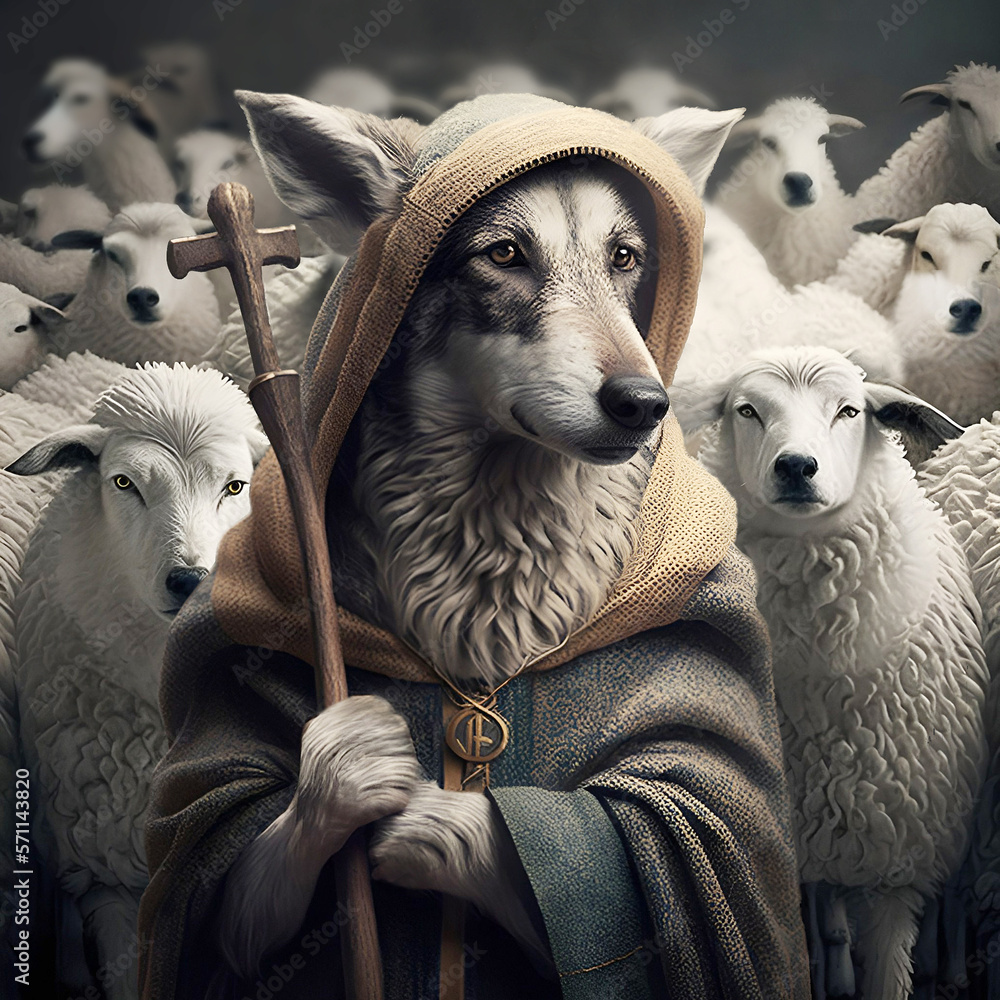 Wolf preacher leads a flock of sheep. Social problems. Society and Very well made.