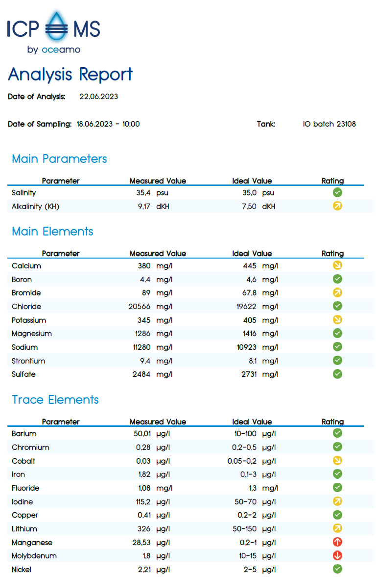 Oceamo ICP MS Results for Instant Ocean Batch 23108 REEF2REEF Very well made.