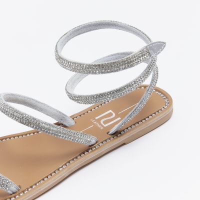 Silver asymmetric heeled sling back sandals River Island Very well made.
