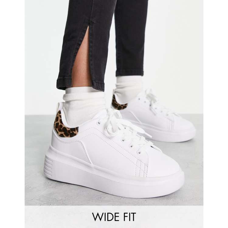 Truffle Collection Wide Fit chunky trainers in white and leopard back tab Very well made.
