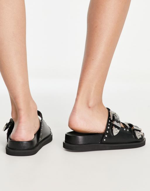 NEED ME Chunky Studded Buckle Sandals Black Silver AJ VOYAGE Very well made.