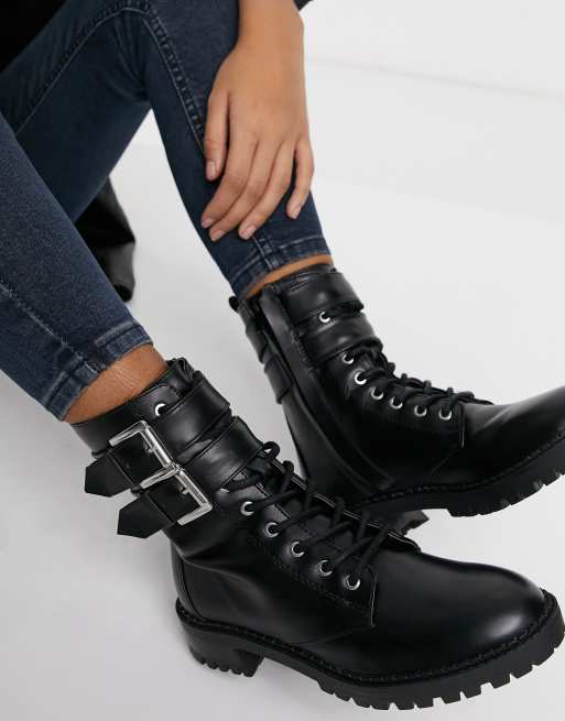 ASOS DESIGN chunky boot with biker details in black ASOS Very well made.