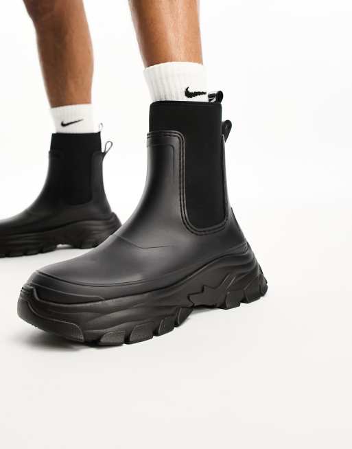 ASOS DESIGN Giana chunky chelsea rain boots in black Very well made.