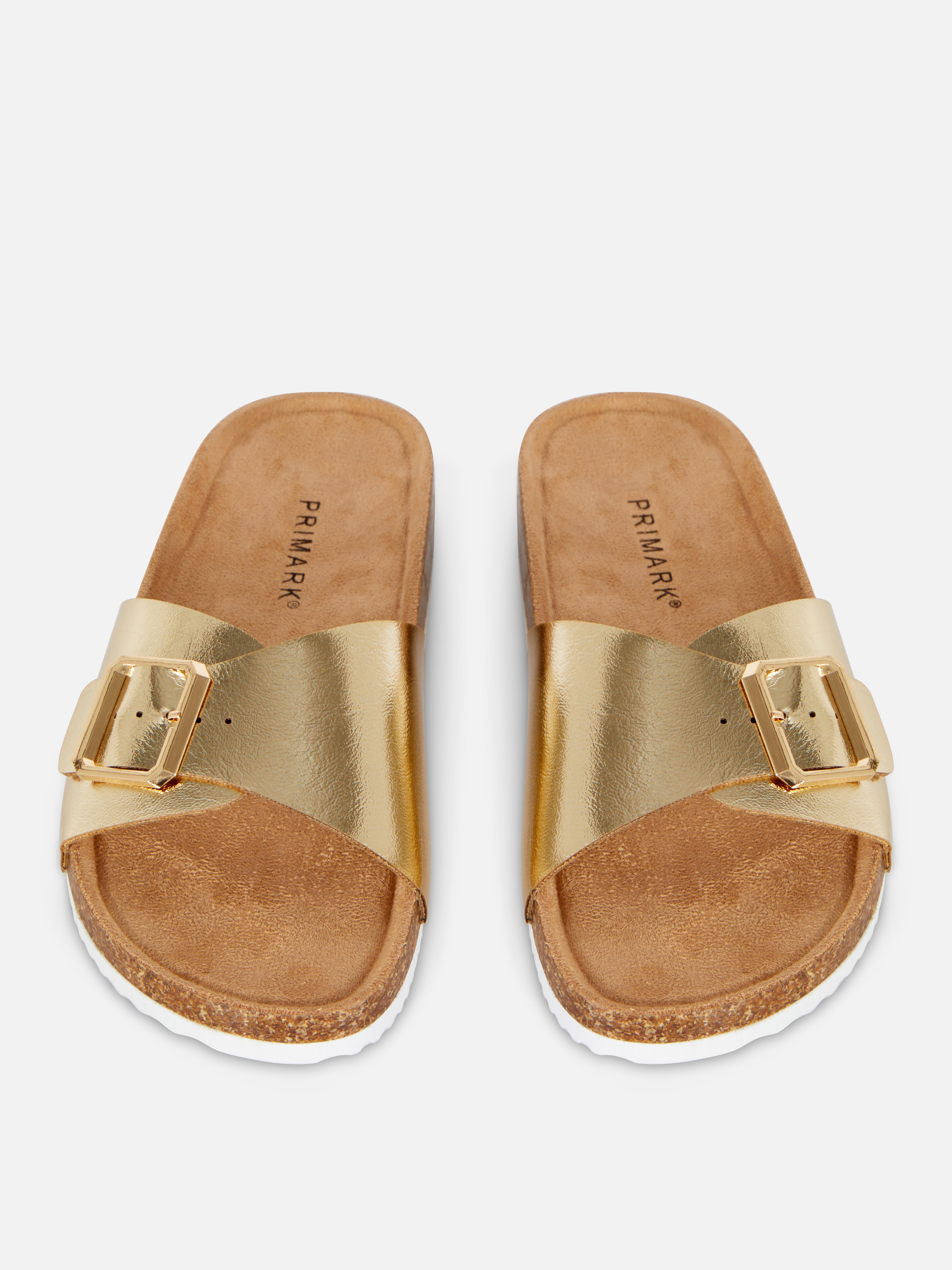 Womens Gold Buckle Strap Footbed Sandals Primark Very well made.