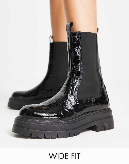 Topshop Wide Fit Kiki pull on chelsea boot in black croc Very well made.