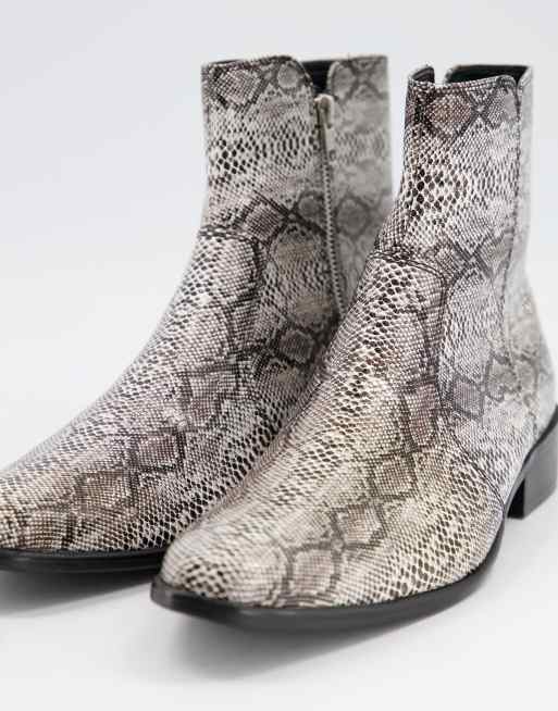 Luca 40mm Side Zip Boot Grey Snake Effect Leather FROMTHEFIRST Very well made.