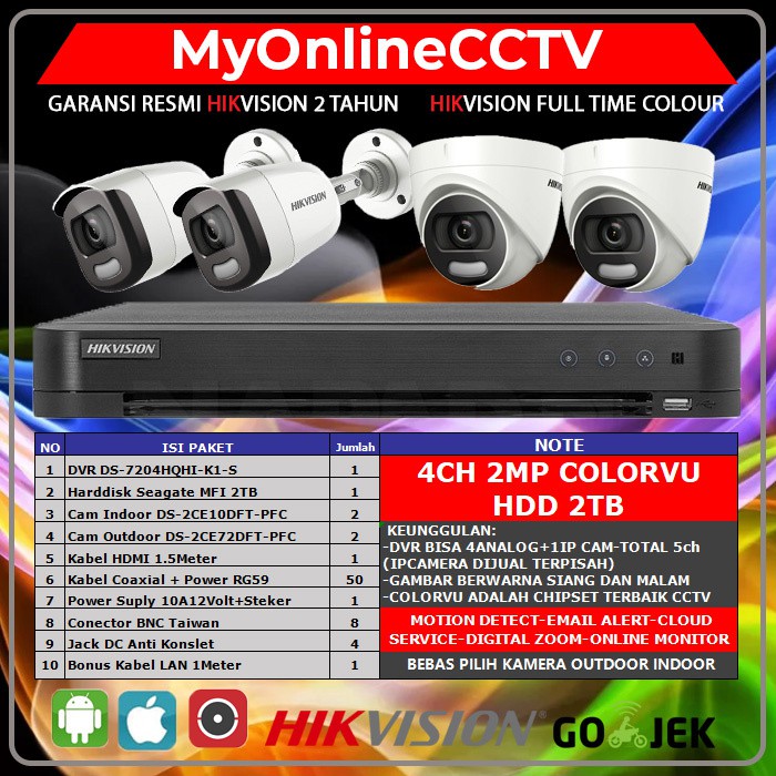Jual PAKET CCTV HKVISION 4 CHANNEL 2MP COLORVU LENGKAP 4 KAMERA Very well made.