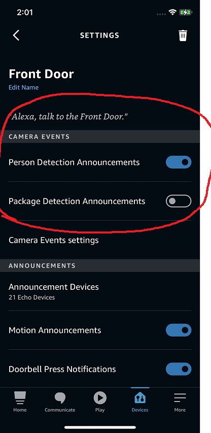 Alexa Person and Package Detection Announcements feature not working Very well made.