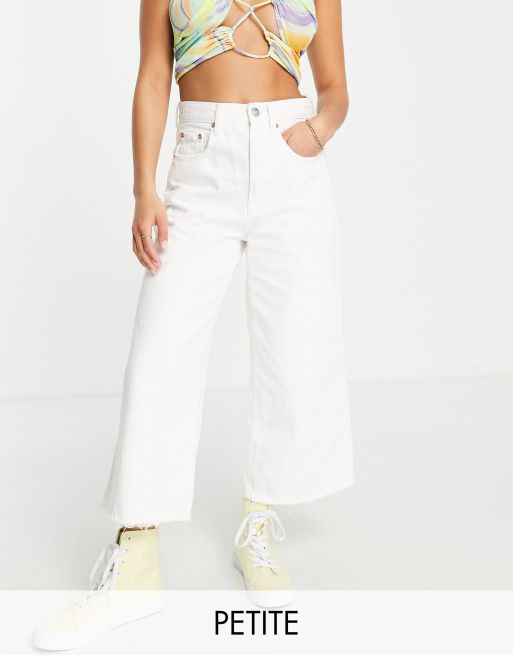 Stradivarius Petite cropped denim jean with raw hem in white ASOS Very well made.