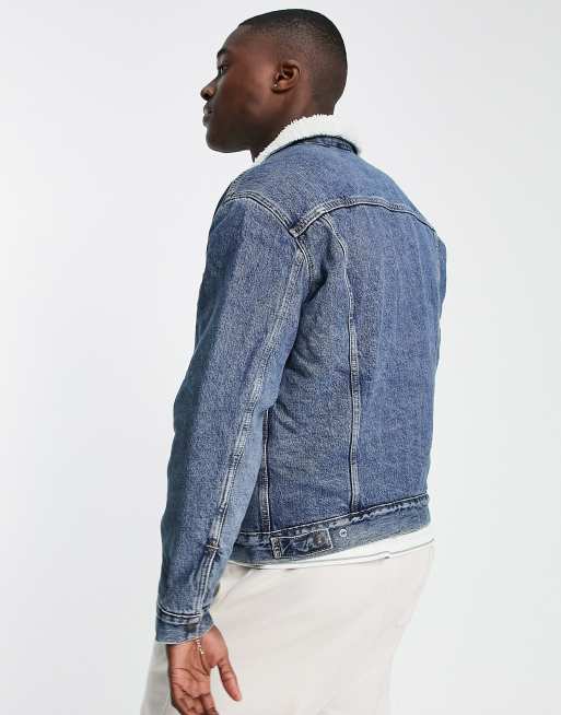 Levi s sherpa trucker jacket in mid blue wash ASOS Very well made.